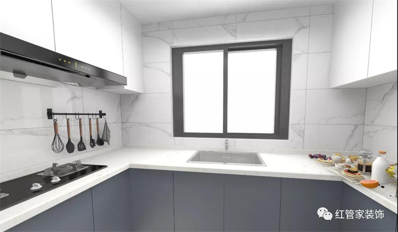 廚房櫥櫃(地櫃+吊櫃),地櫃,包含櫃體莫幹山生态闆,石英石台面(miàn),抽屜飄雪大地,膚感材質闆門。吊櫃,包含櫃體莫幹山生态闆,高光材質櫃門。